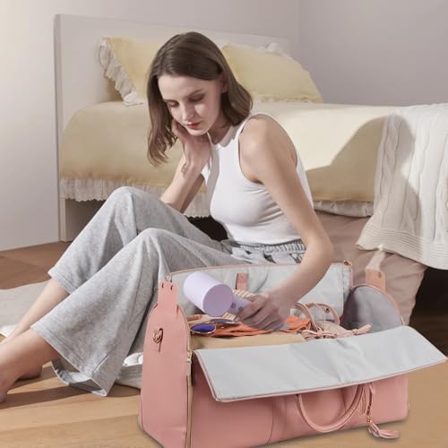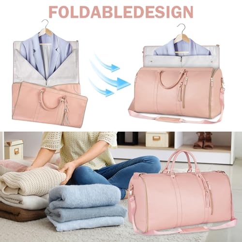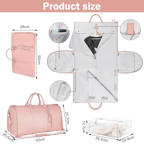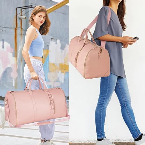 MeYuxg - شنطة دفل للسفر، شنطة ملابس للنساء قابلة للطي مع حافظة حذاء، شنطة سفر كبيرة 2 في 1، شنطة سفر معلقة، لون زهري، مقاس M، نمط ترفيهي