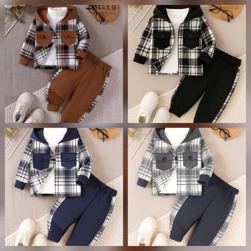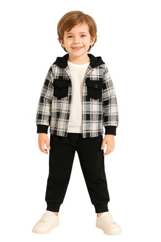Meza - Meza طقم شتوي أطفال مبطن جوخ ستايل عصري، بدلة قطعتين للأطفال من 2-8 سنوات، جاكيت كاروهات مع بنطلون