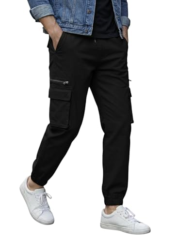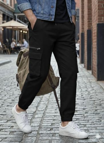 Meza - بنطلون كارغو رجالي بنجالين ليكرا خفيف، تلبيس ضيق، خصر مطاطي مع رباط، جيوب جانبية بسحاب، للخروج والكاجوال والرياضة من ميزا