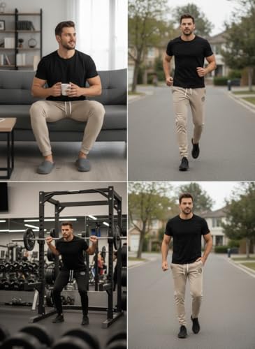 Meza - بنطلون رياضي رجالي قطن ميلتون، جيوب جانبية وخلفية، مناسب للجيم والكاجوال للشباب والرجال من ميزا