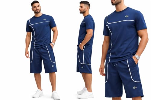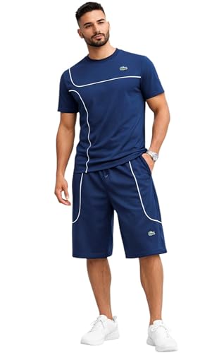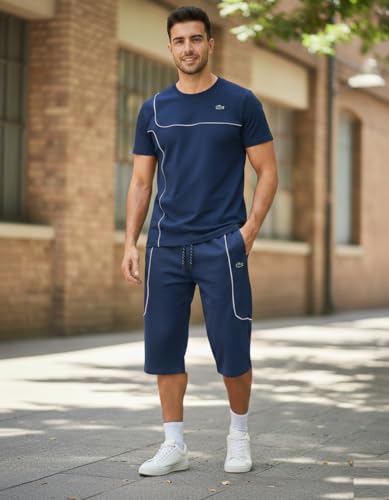 Meza - MEZA طقم رياضي رجالي صيفي، قطن ملتون ليكرا، شورت تحت الركبة، مضاد للوبرة والانكماش، طباعة DTF