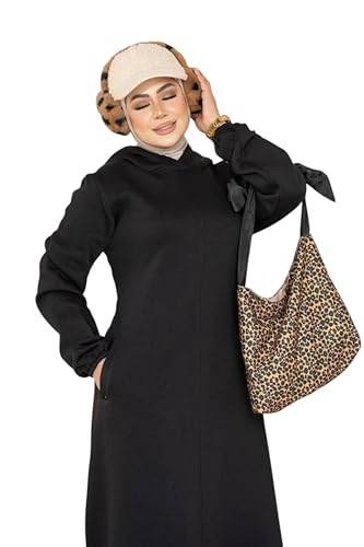 Meza - ميزا فستان هودي شتوي حريمي طويل، بجيب جانبي ، كاجوال محتشم للبيت والخروج مقاس واحد من 70 الي 95 كيلو