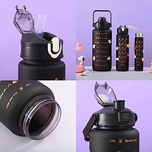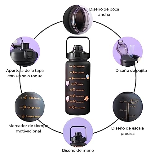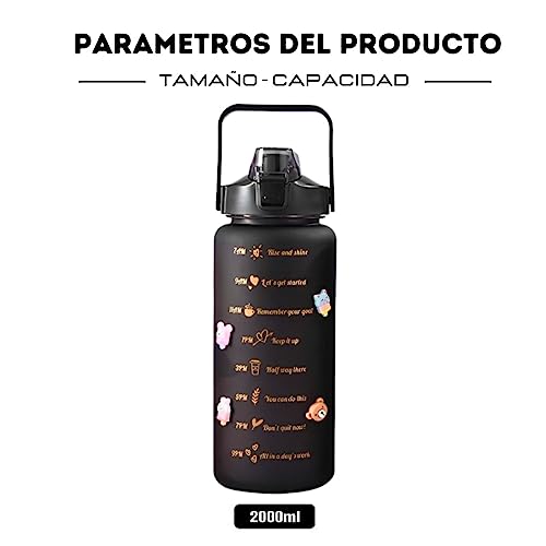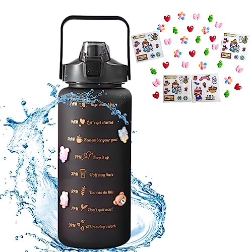 mfi home - زجاجة مياه رياضية خالية من مادة بيسفينول أ من ام اف اي هوم بماصة سعة 2 لتر بدبابيس وملصقات للأطفال بتصميم بعلامات وقت تحفيزية قطعة واحدة في العبوة لون أسود