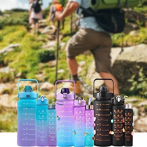 - اقتباسات تحفيزية وعلامة تحديد للوقت: تتميز زجاجة المياه باقتباسات ملهمة فريدة وعلامات زمنية، والتي ستذكرك بالبقاء رطبًا وشرب كمية كافية من الماء طوال اليوم، زجاجة مياه مخصصة مع دبابيس وستيكرات