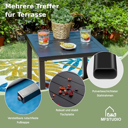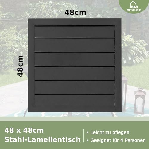 MFSTUDIO - طاولة حديقة مقاومة للطقس 48 سم، طاولة بلكونة وطاولة جانبية معدنية خارجية للحديقة للقهوة والشاي والبيسترو، طاولة صغيرة من ام اف ستديو، أسود