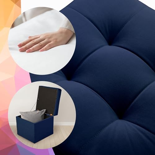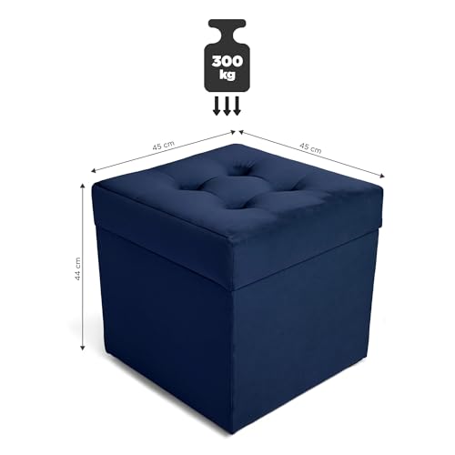 Mg Design - مقعد منجد ناعم مفصلي قابل للطي من القطيفة بمساحة تخزين (50 لتر)، يمكنه تحمل حمولة تصل لـ 100 كيلوجرام من جي ام ديزاين، مقعد لغرفة المعيشة وغرفة النوم والرواق، لون أزرق، مقاس 45 × 45 سم