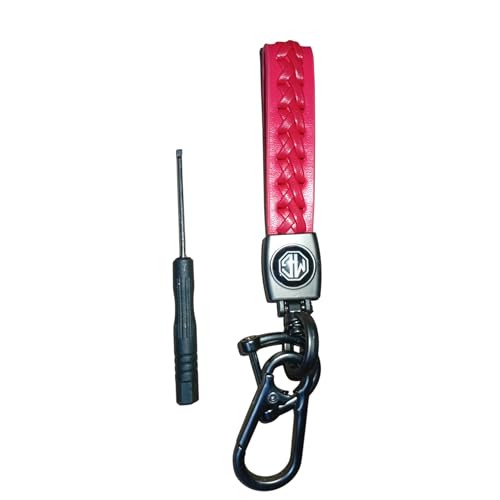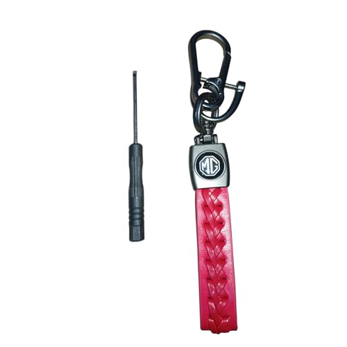 Generic - ميدالية مفاتيح جلد طبيعي فاخرة بشعار MG - تصميم مجدول يدوي باللون (احمر) - حلقة معدنية شديدة التحمل مضادة للصدأ - إكسسوار أنيق لسيارات إم جي (MG5, MG6, ZS, RX5)