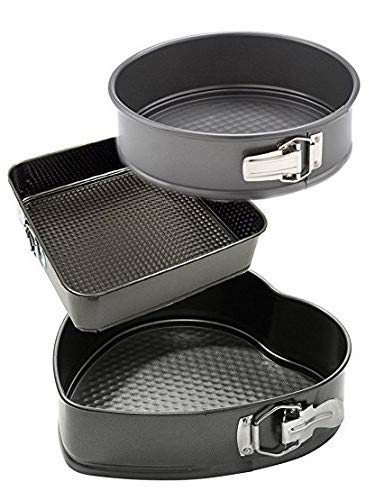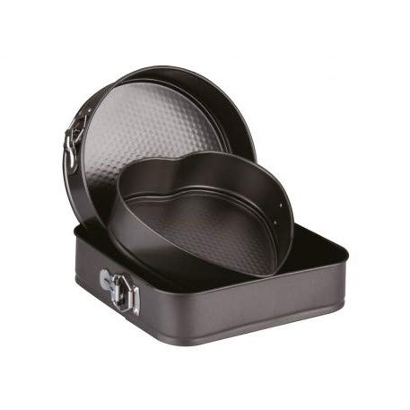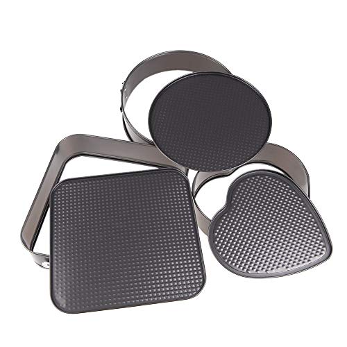 MGE World - قوالب فرن قابلة للازالة من ام جي اي - تصميم مربع - ودائري وعلى شكل قلب - مجموعة من 3 قطع - بطلاء مانع للالتصاق - لون رمادي