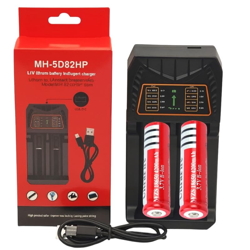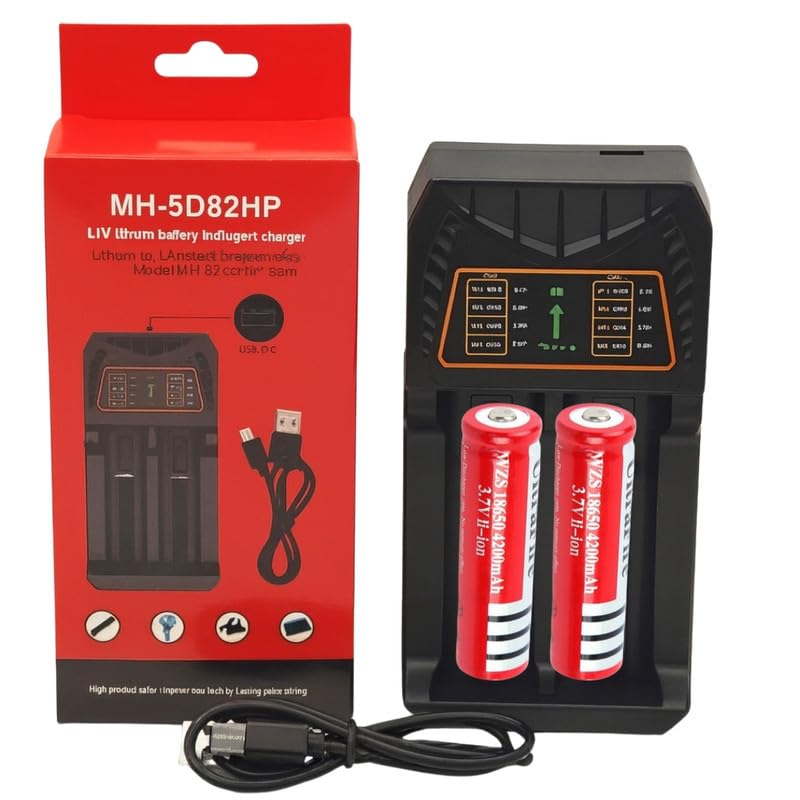 Generic - شاحن بطارية ليثيوم MH-5D82HP 3.7 فولت مع مؤشر LED ومدخل USB | شاحن بطاريات ليثيوم MH-5D82HP بواجهة USB وشاشة LED 3.7 فولت