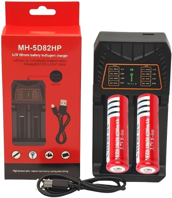 Generic - شاحن ليثيوم محمول ثنائي الاتجاه MH-5D82HP مع قطعتين 3.7 فولت لمقاسات متعددة
