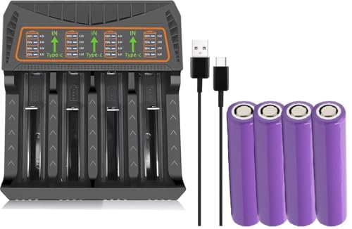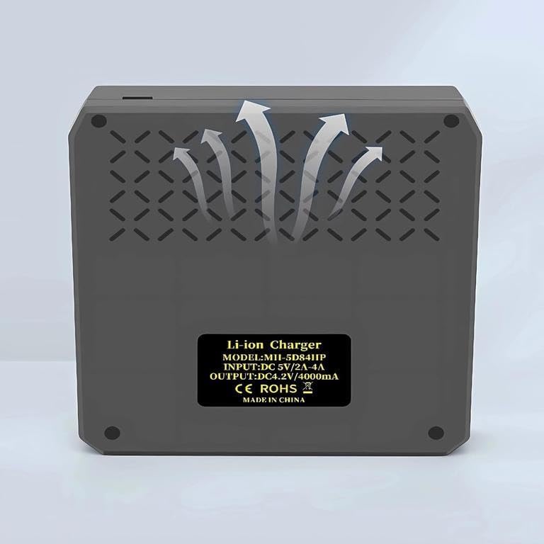 Generic - شاحن ليثيوم 4 فتحات MH-5D84HP مع 4 بطاريات ليثيوم 3.7 فولت شاحن سريع ذكي مع مدخل من النوع C