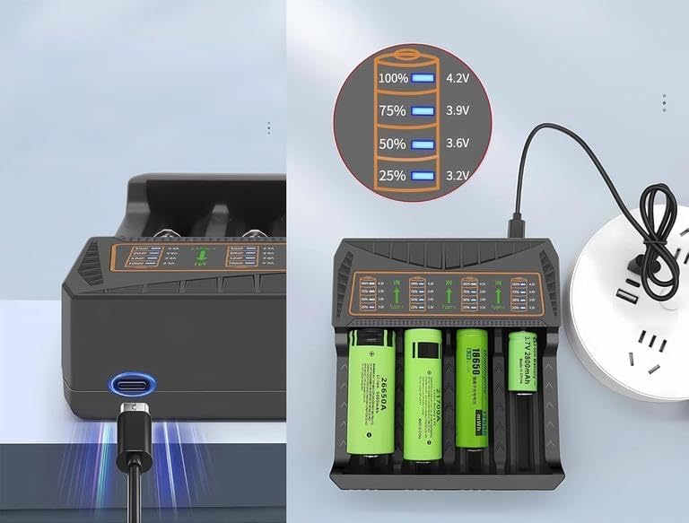 - شحن ذكي بـ 4 فتحات - اشحن ما يصل إلى أربع خلايا قابلة لإعادة الشحن في نفس الوقت قنوات شحن مستقلة - تعمل كل فتحة بشكل منفصل للحصول على أداء متوازن وفعال، شاشة شحن واضحة - تعرض حالة الشحن في الوقت الفعلي لسهولة المراقبة. حماية أمان متقدمة - تساعد على منع الشحن الزائد والحرارة الزائدة وقصر الدوائر الكهربائية - مدخل طاقة من النوع سي - اتصال طاقة حديث ومستقر ومريح تصميم صغير ومتين - مثالي للمنزل والمكتب والاستخدام الاحترافي