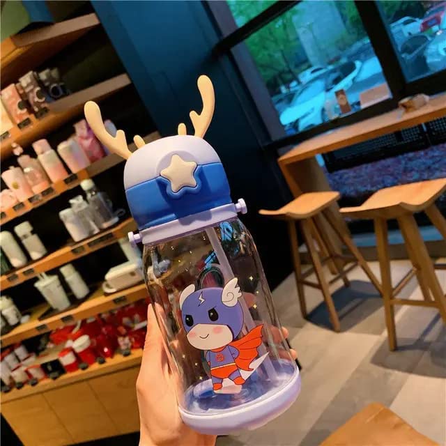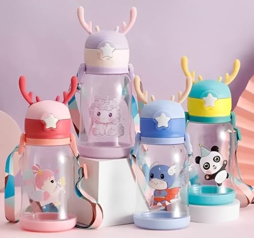 MH VILLA - زجاجة مياه بلاستيكية مضادة للتسرب بتصميم كرتوني للاطفال مع ماصة وحزام كتف للطلاب والاطفال من ام اتش فيلا وعصير للمدرسة - 500 مل عبوة واحدة - متعددة الالوان، من فيلا ام اتش