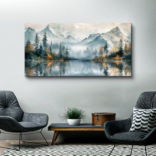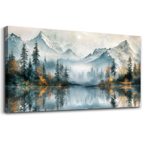 MHARTK66 - ام اهارت كي 66 لوحة فنية جدارية من القماش لغرفة النوم، ديكورات مؤطرة لغرفة المعيشة، ديكور حائط المكتب الحديث، لوحة منظر للبحيرة، لوحة شجرة الغابة والمناظر الطبيعية، اعمال فنية قماشية جاهزة للتعليق