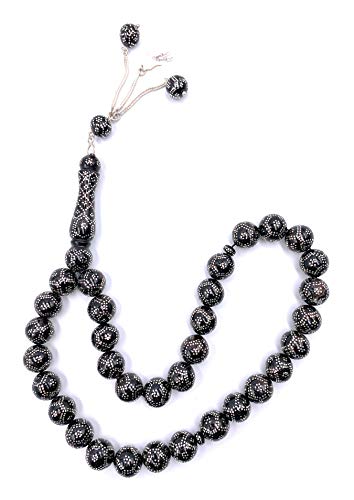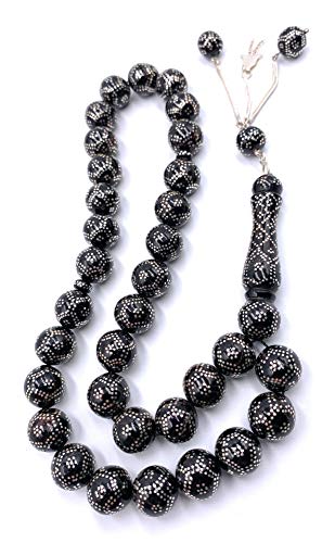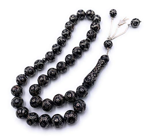 MHSJEWELLERY - سبحة اليسر المرجان الاسود 12 ملم مدور مشغولة بالفضة النقية يدويا ، من ام اتش اس جيه اي جيويلري متعدد الألوان للنساء