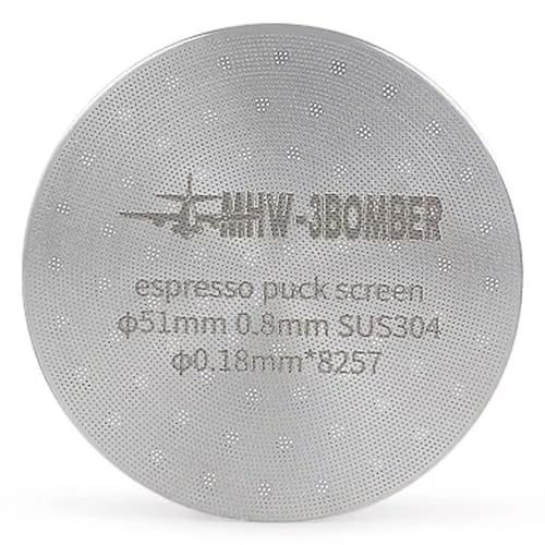 - صناعة متقنة: وسمك شاشة القرص هذه 0.8 ملم. إنه أرق من شاشات الإسبريسو العادية، لذلك لا داعي للقلق بشأن الاضطرار إلى تقليل كمية البودرة عن عمد. إذا كان هناك برغي داخلي في رأس التخمير الخاص بك، فلا نوصي باستخدام شاشة القرص.