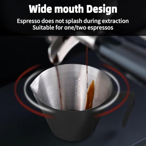 - علامات المقياس: المقاييس من الأسفل إلى الأعلى، 1 اونصة، 1.5 اونصة، 2 اونصة، والتي يمكن أن تحمل ما يصل إلى 3 أونصات من السائل على الأكثر. مقياس دقيق يجعل صنع قهوتك أسهل. مناسبة للحصص المفردة أو المزدوجة من الاسبريسو.