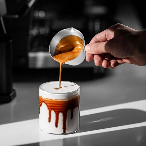 - 【كوب غير هش】 مصنوع من الستانلس ستيل 304، لن يصدأ ولن ينكسر بسهولة مثل أكواب القياس الزجاجية. نصائح ودية: تم الانتهاء من سطح كوب الاسبريسو بعملية خبز بدرجة حرارة عالية. نوصي بعدم استخدام غسالة الصحون لحماية الطلاء