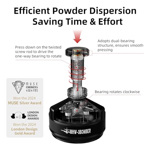 MHW-3BOMBER - أداة لتحضير الإسبريسو من سلسلة YU طراز T5958-OS سايكلون بقاعدة مغناطيسية لمحترفي الباريستا بعمق قابل للتعديل لعملية التقليب، مع أداة توزيع بإبر 0.25 ملم × 14 من ام اتش دبليو 3 بومبر بمقاس 51 ملم