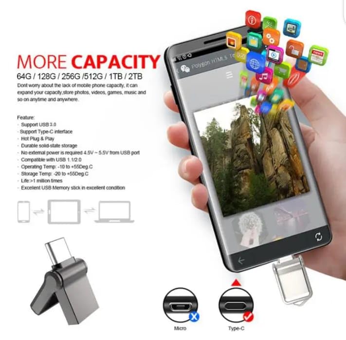 Generic - ذاكرة فلاش ام اي 2 تيرابايت سي * يو اس بي فائقة السرعة - اسود
