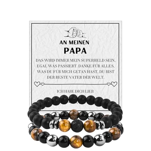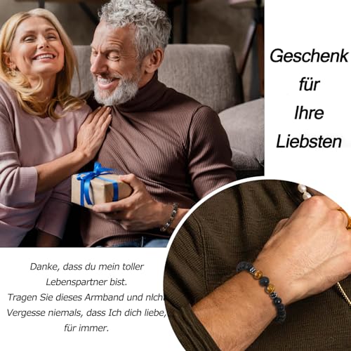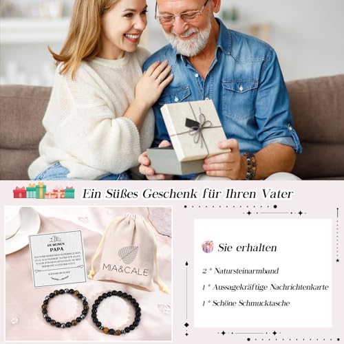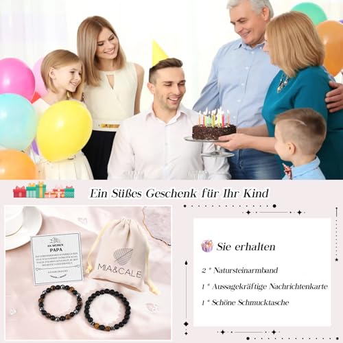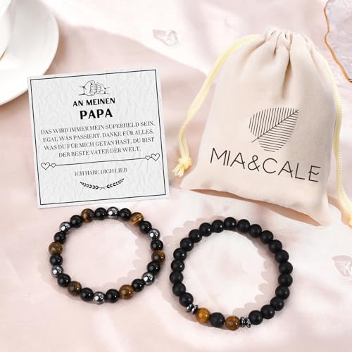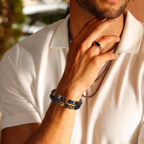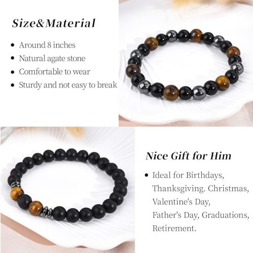 Mia & Cale - إسورة من ميا & كيل للرجال، مصنوعة من حجر عين النمر والأوبسيديان، بلون أسود وتصميم حجر طبيعي، مقاس 19 سم