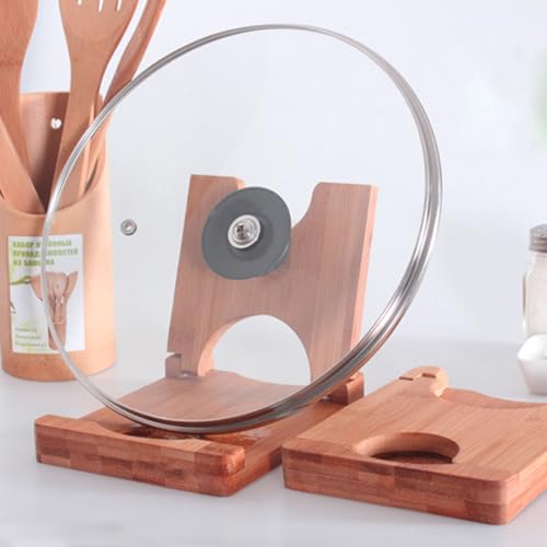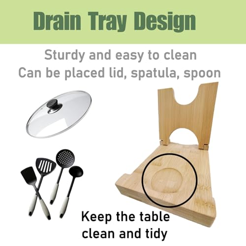 MIAO YUAN - حامل غطاء اواني المطبخ من الخيزران، حامل تخزين متعدد الوظائف وقابل للطي لادوات المطبخ، صينية رف تجفيف الملاعق والمجرفة، رف تنظيم لاغطية الاواني