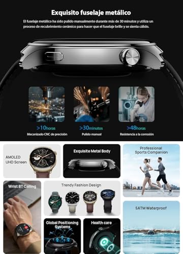 - شاشة عرض عالية الدقة HD وبألوان زاهية، تتضمن الساعة شاشة اموليد فائقة الوضوح HD بحجم 1.32 بوصة مع هيكل معدني أنيق وطلاء سيراميك لإحساس فاخر.