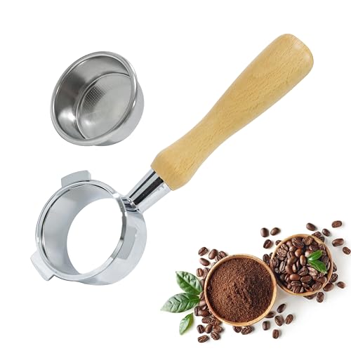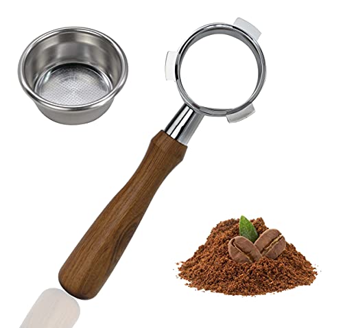 MIBRU - ملحق ماكينة صنع القهوة من ميبرو مقاس 54 ملم الستانلس ستيل بدون قاع وفلتر وحامل ومقبض خشبي قهوة احترافي متوافق مع ماكينات بريفيل 8 عدد القطع: 1