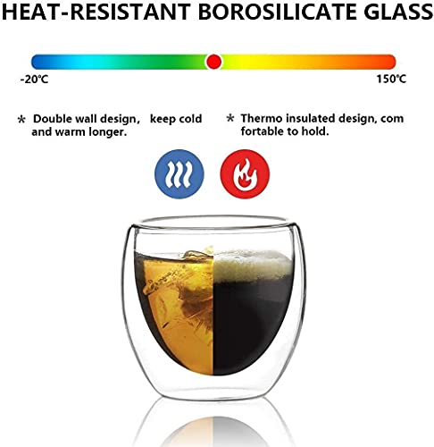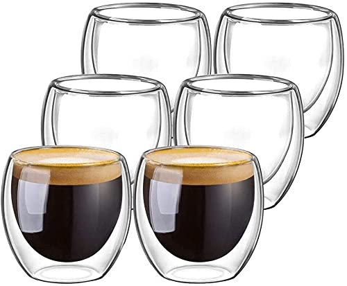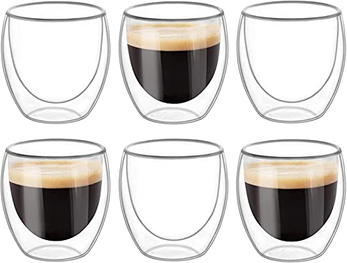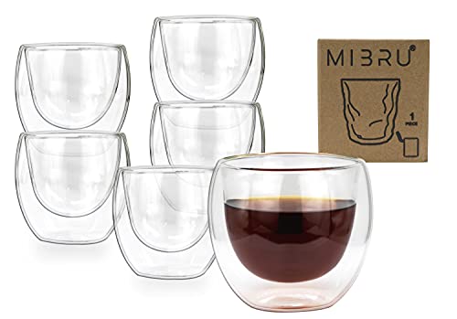 - زجاج مزدوج الجدار من ميبرو للاسبريسو والشاي التركي والقهوة العربية، زجاج معزول حراريًا | مثالي لللاتيه والكابتشينو وأمريكانو | أكواب شاي الفقاعات | أكواب زجاجية للمشروبات بطبقة مزدوجة 80 مل (عبوة من 6 قطع)