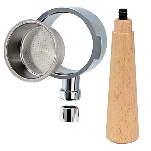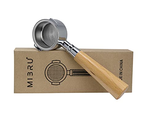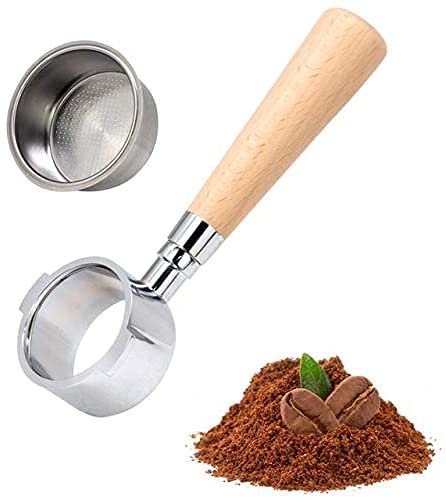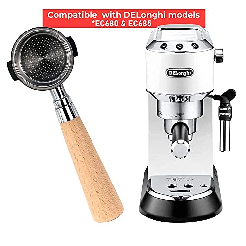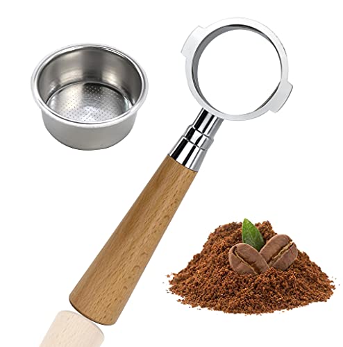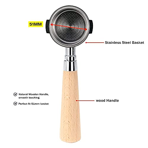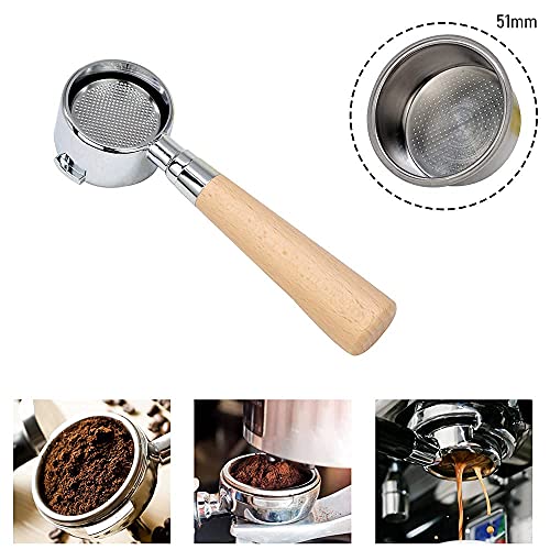 MIBRU - حامل فلتر قهوة اسبريسو بدون قاع قطر51 ملم مصنوع من الستانلس ستيل بمقبض خشب، لسلة سعة كوبين لماكينة تحضير القهوة ديلونجي