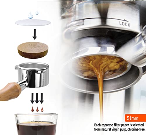 - ☕ السلامة - يتم اختيار كل ورق فلتر قهوة اسبريسو مقاس 51 ملم من لب بكر طبيعي خالٍ من الكلور وخالي من الكلور.