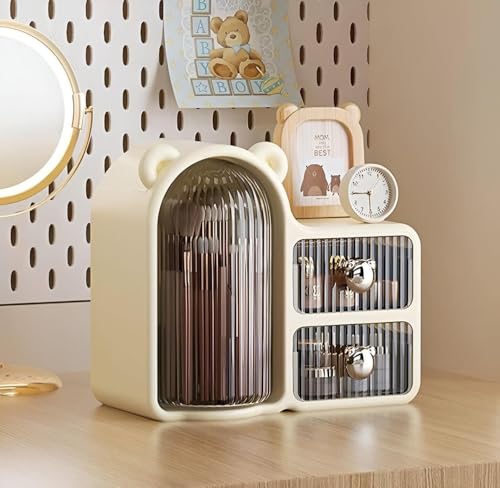 - يوفر نظام تخزين مقسم مع مساحات مخصصة لتنظيم فعال لمستحضرات التجميل واللوازم المكتبية