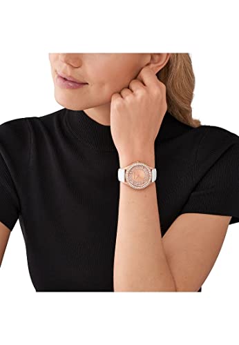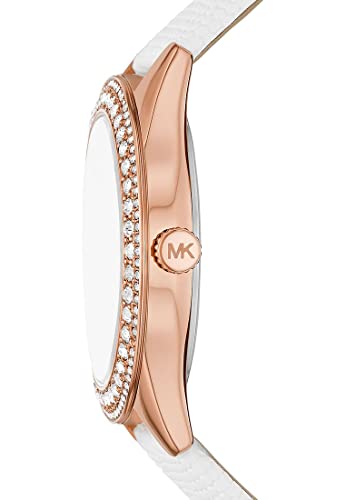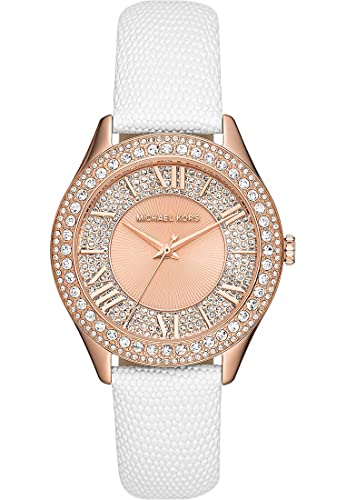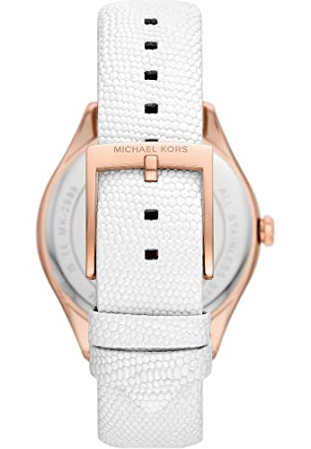 Michael Kors - ساعة يد هارلوي بثلاث عقارب وسوار من جلد السحلية بلون أبيض للنساء من مايكل كورس، موديل MK2989
