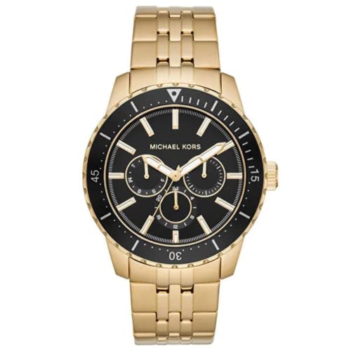 Michael Kors - ساعة يد انالوج دائرية بمينا معدني اسود للرجال من مايكل كورس MK7154 - ذهبي