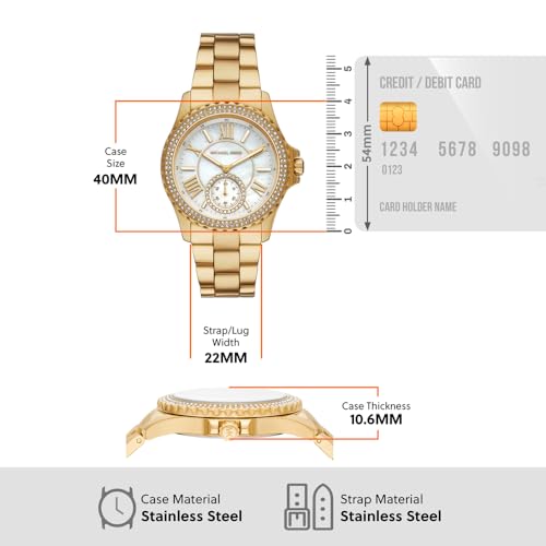 Michael Kors - ساعة ايفرست بثلاث عقارب من فولاذ مقاوم للصدأ بلون ذهبي مايكل كورس MK7401 للنساء