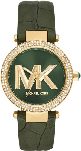 Michael Kors - مايكل كورس ساعة باركر بثلاثة عقارب وسوار جلد اخضر طراز MK4724، اخضر، عصرية، للنساء