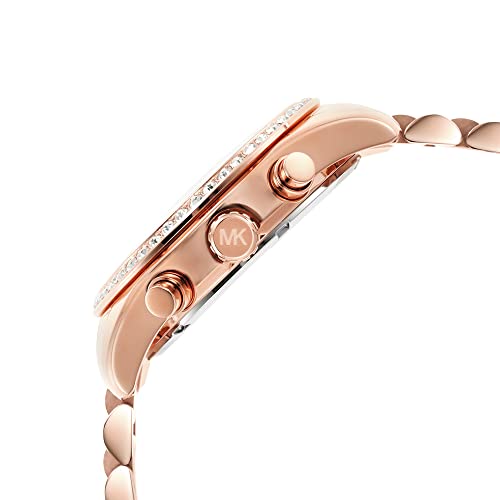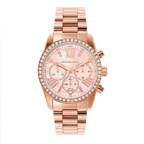 Michael Kors - مايكل كورس ساعة ليكسينغتون انالوج بعقارب ومينا بينك وسوار ذهبي وردي للنساء من ليكسينغتون -Mk7242It