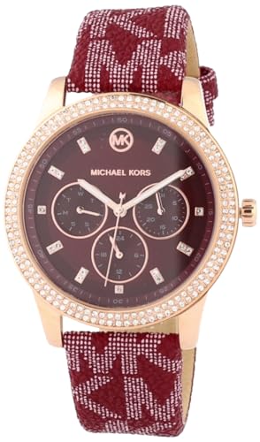 Michael Kors - ساعة بمينا وسوار من بلاستيك بي في سي للنساء تيبي من مايكل كورس، 40 ملم، روز جولد/أحمر نبيذي