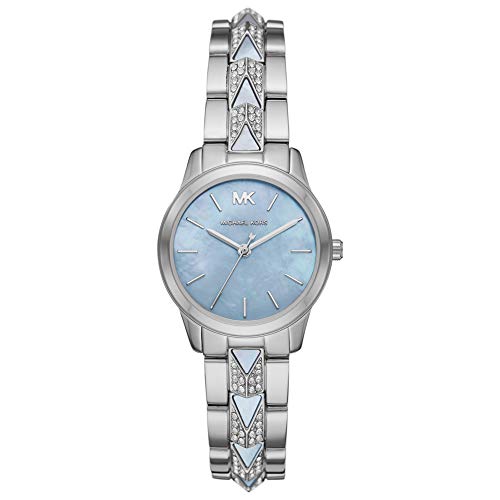 Michael Kors - ساعة يد بعقارب بسوار معدني من مايكل كورس للنساء - فضي وتركواز