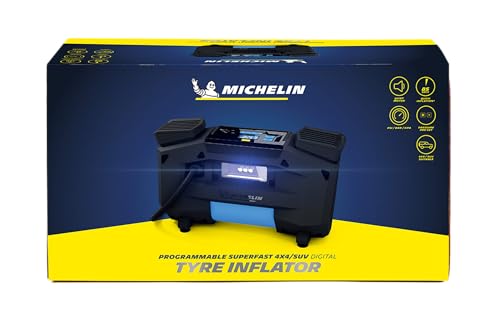Michelin - منفاخ إطارات رقمي قابل للبرمجة من ميشلان فائق السرعة بخاصية الضبط المسبق وصمام تفريغ و3 محولات وإضاءة ليد للسيارات، موديل 12314
