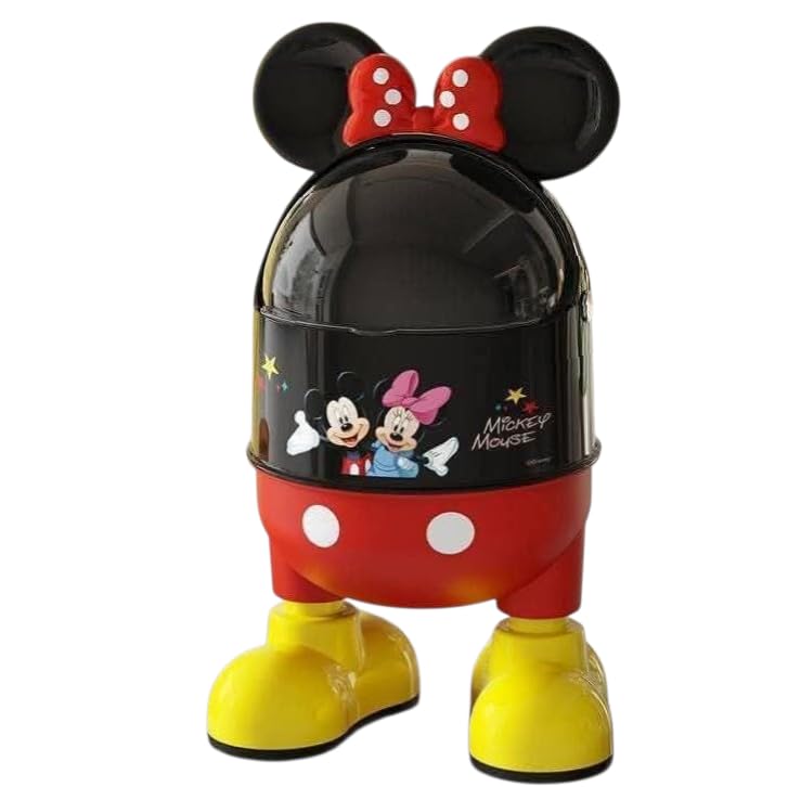- تصميم : سلة تخزين بتصميم ميكي وميني ماوس الكلاسيكي مع أذنين وفيونكة حمراء وأحذية صفراء مميزة بارتفاع 26 سم