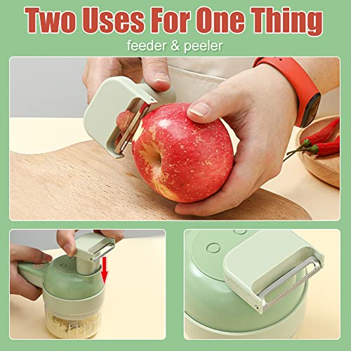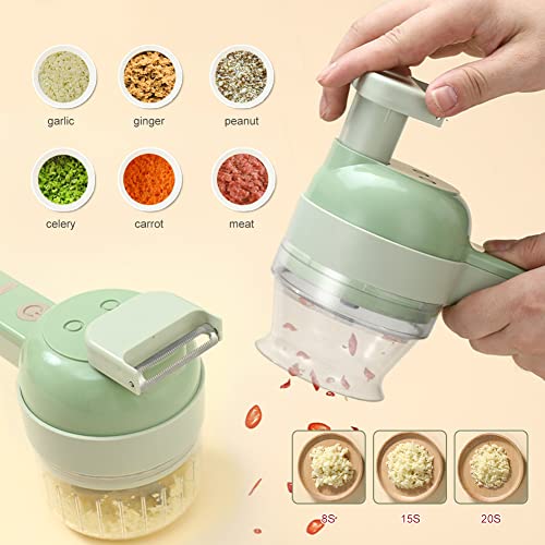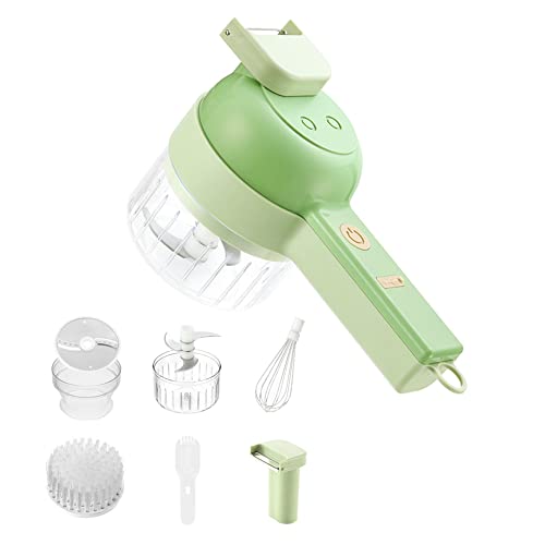 Micrael Home - مجموعة قطاعة خضروات كهربائية محمولة باليد 5 في 1 من ميكويل هوم، مُحضر طعام متعدد الوظائف، قطاعة شرائح وهراسة ومقشرة ومضرب وأداة تنظيف للثوم والبصل والفلفل والزنجبيل والكرفس واللحوم والبيض مع فرشاة