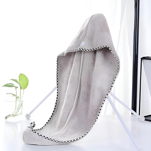Generic - فوطة تجفيف شعر ماصة من المايكروفايبر مع زر للإغلاق، غطاء رأس سريع الجفاف للنساء، قبعة ناعمة وخفيفة الوزن مثالية للاستحمام والسفر والعناية اليومية بالشعر