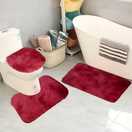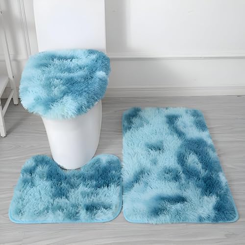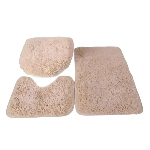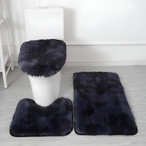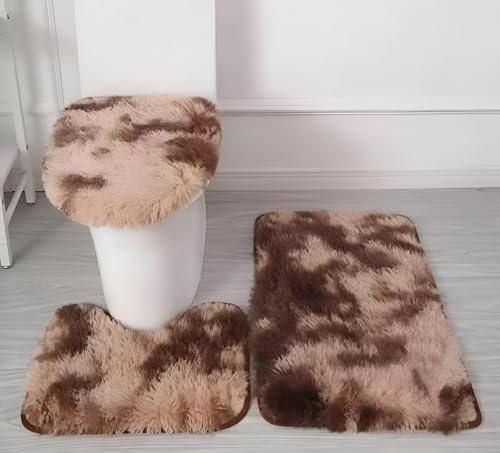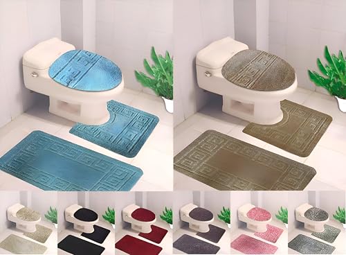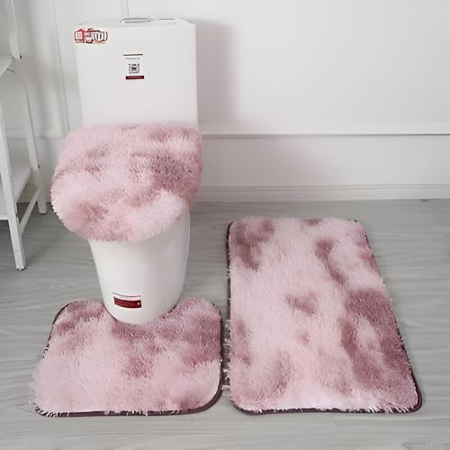 Generic - سجادة حمام من المايكروفايبر - مجموعة دواسات حمام مضادة للانزلاق مكونة من 3 قطع مع سجادة مستطيلة وسجادة محيطية وغطاء مرحاض توفر قدرة عالية على الامتصاص ولمسة ناعمة بنقشة ملونة