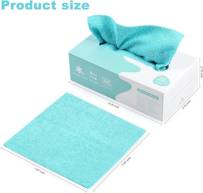 - تصميم صغير ومريح: يبلغ مقاس كل فوطة 20سم × 20سم، وهي مثالية للتعامل مع الانسكابات الصغيرة أو تنظيف المرايات أو تلميع السيارات أو مهام التنظيف المنزلية اليومية.