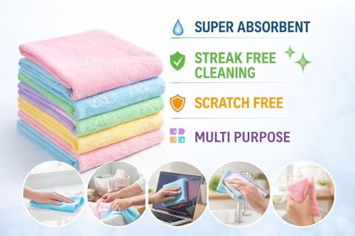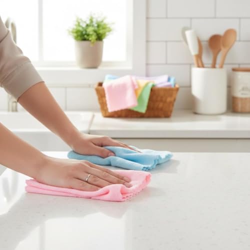 - أقمشة مايكروفايبر قابلة للغسل في الغسالة ويمكن إعادة استخدامها عدة مرات دون فقدان النعومة أو أداء التنظيف.