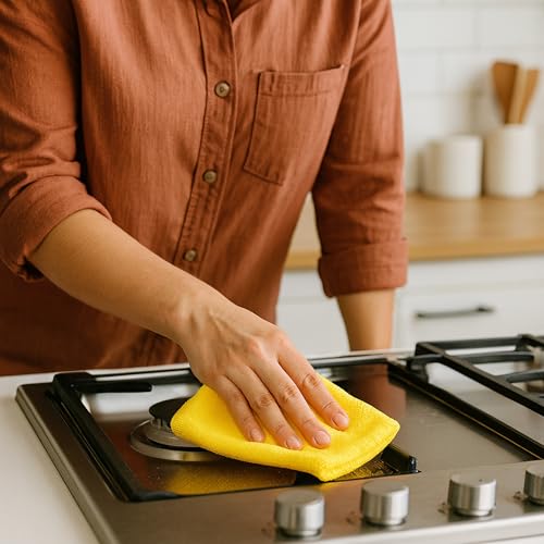 Generic - فوط تنظيف مايكروفايبر – عبوة 20 قطعة، متعددة الأغراض بامتصاص فائق، خالية من الوبر، قابلة للغسل للأسطح والفولاذ والزجاج (أصفر)