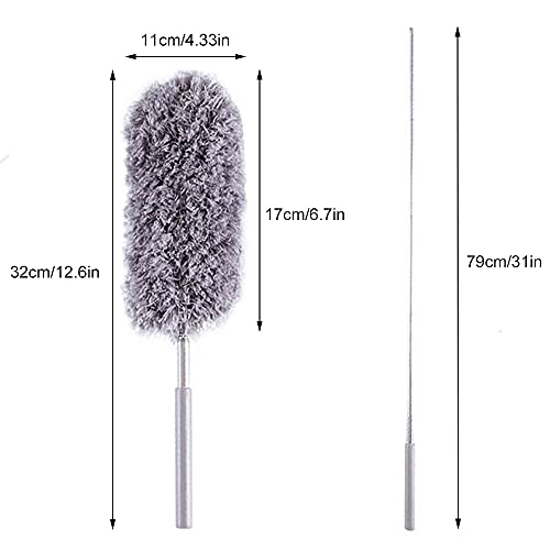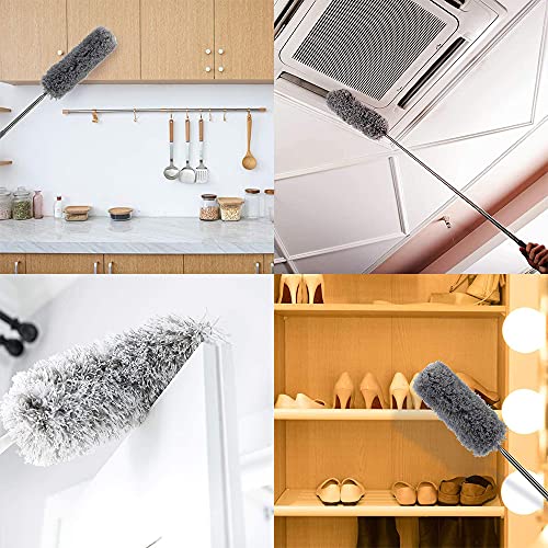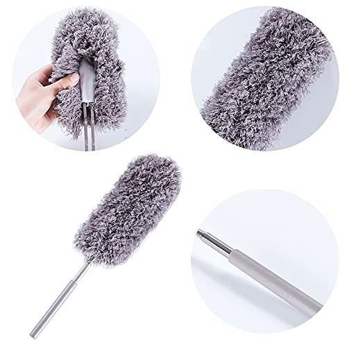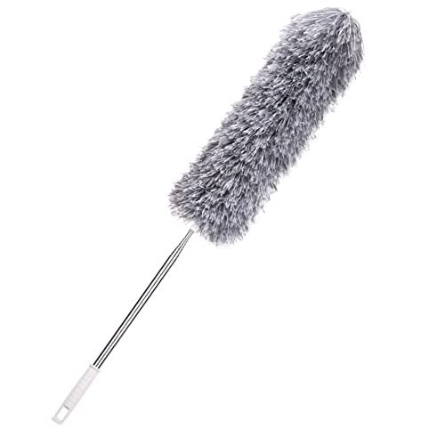 UFE - منفضة غبار مايكروفايبر، زعافة ريش يدوية بمقبض طويل قابلة للغسل لتنظيف مراوح السقف العالية والستائر وشبك العنكبوت والسيارة