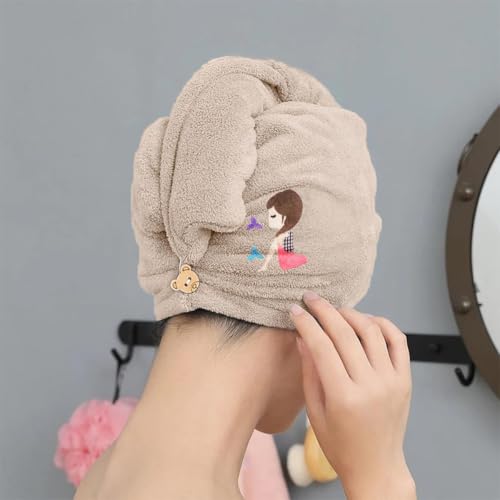 Generic - بونيه تجفيف الشعر المايكروفايبر بشكل دبدوب لطيف – كاب سريع الامتصاص يحمي الشعر من الهيشان ويجفف بسرعة – منشفة شعر ناعمة للاستخدام بعد الاستحمام للفتيات والنساء