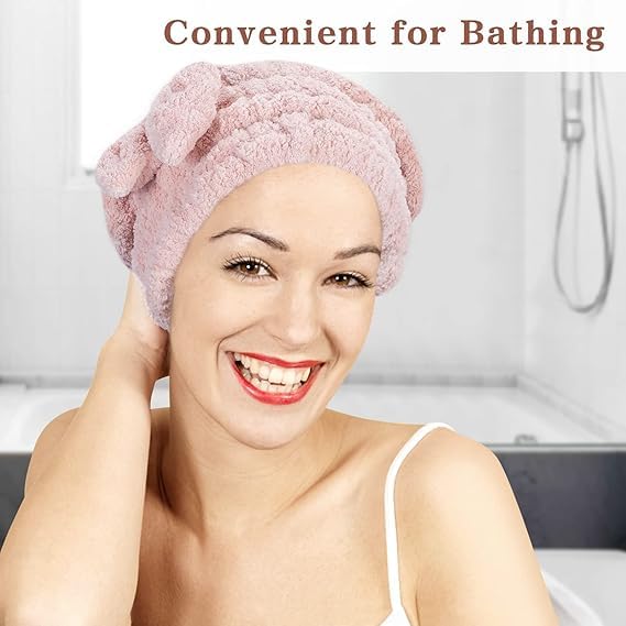 Generic - فوطة كاب لتنشيف الشعر مصنوعة من المايكروفايبر للنساء استحمام ناعم وفائق الامتصاص وسريع الجفاف للشعر المجعد والرطب بينك زهري ألياف دقيقة , مقاس واحد